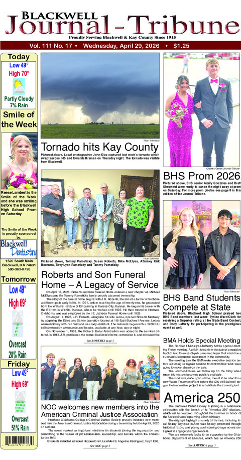 Bodie Jeffries, a senior at Blackwell High School, served as a page for Rep. John Pfeiffer,...